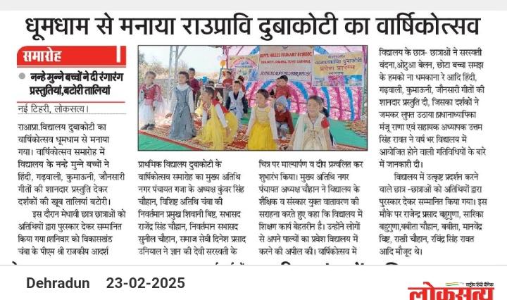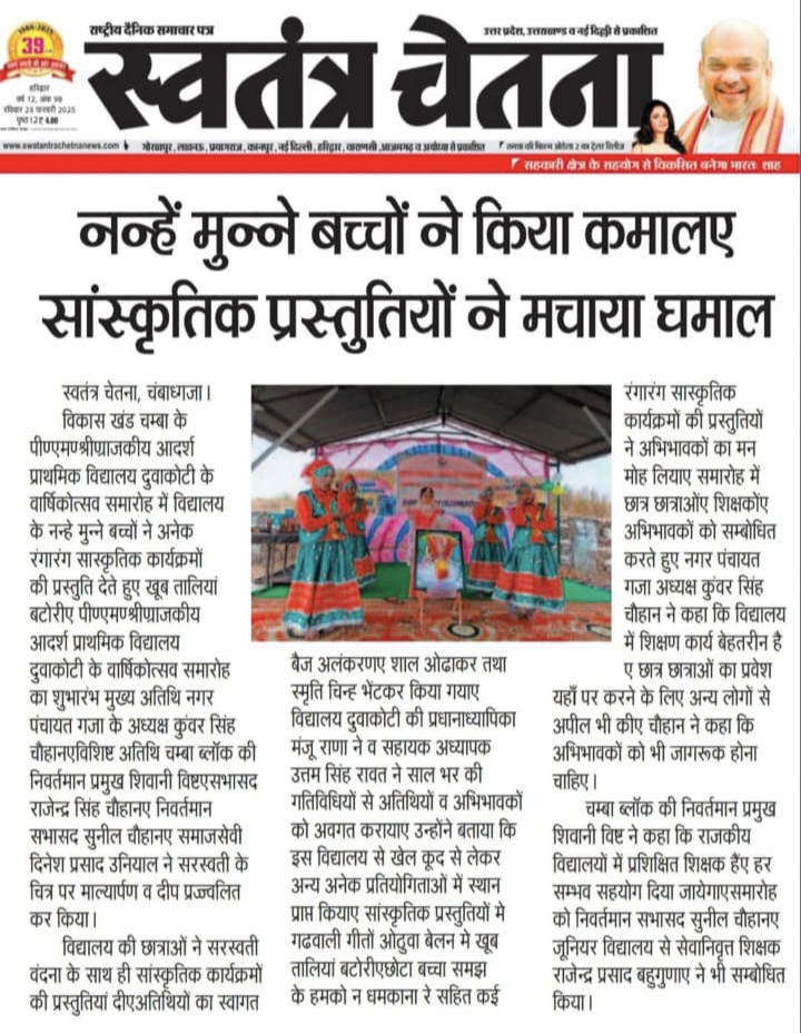 PM SHRI GMPS Duwakoti का यह वार्षिकोत्सव न केवल छात्रों के लिए एक यादगार अनुभव था, बल्कि अभिभावकों और शिक्षकों के लिए भी गर्व का क्षण रहा। विद्यालय परिवार ने यह संकल्प लिया कि वे शिक्षा और संस्कारों के इस अद्भुत संगम को और आगे बढ़ाएंगे।